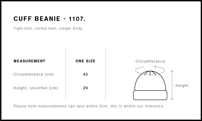 AS ColourCuff Beanie (AS-1107) Product formSKU: 1107-AUTMN-P-OS $13.95 Excl. GST ColourAutumn / One Size Free pickup in our shop(s) Asphalt Marle / One Size Bone / One Size Atlantic / One Size Army / One Size Autumn / One Size Black / One Size Camel / One Size Ecru / One Size Navy / One Size Grey Marle / One Size Cardinal / One Size Mushroom / One Size Gold / One Size Copper / One Size Pink / One Size Cobalt / One Size Mauve / One Size Petrol Blue / One Size Rose / One Size Pistachio / One Size Pine Green / One Size Powder / One Size White Marle / One Size Mustard / One Size Free pickup in our shop(s) ColourAutumn Free pickup in our shop(s) Asphalt Marle Bone Atlantic Army Autumn Black Camel Ecru Navy Grey Marle Cardinal Mushroom Gold Copper Pink Cobalt Mauve Petrol Blue Rose Pistachio Pine Green Powder White Marle Mustard Size Free pickup in our shop(s) One Size